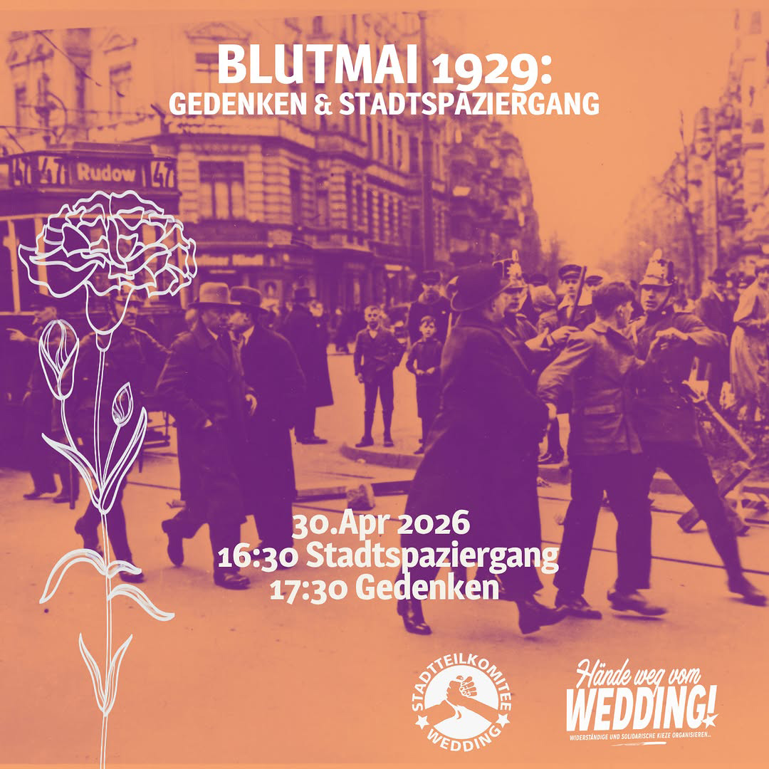 Heute erinnert das Stadtbild kaum noch an die Geschichte und Kämpfe der sozialistischen Bewegung, an den aufkommenden Faschismus und an die Brutalität der Herrschenden, welche die bestehende Ordnung aufrecht erhalten sollte. Auf unserem Stadtspaziergang zum Blutmai 1929 werden wir uns sowohl die Ereignisse der Barrikadenkämpfe, als auch deren Vorgeschichte und die Nachwirkungen bis in unsere Gegenwart anschauen.