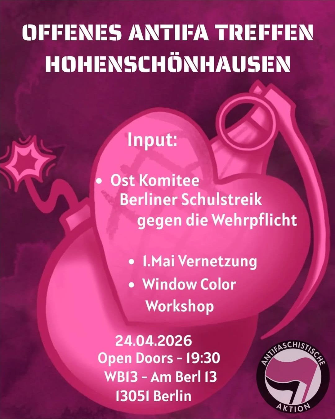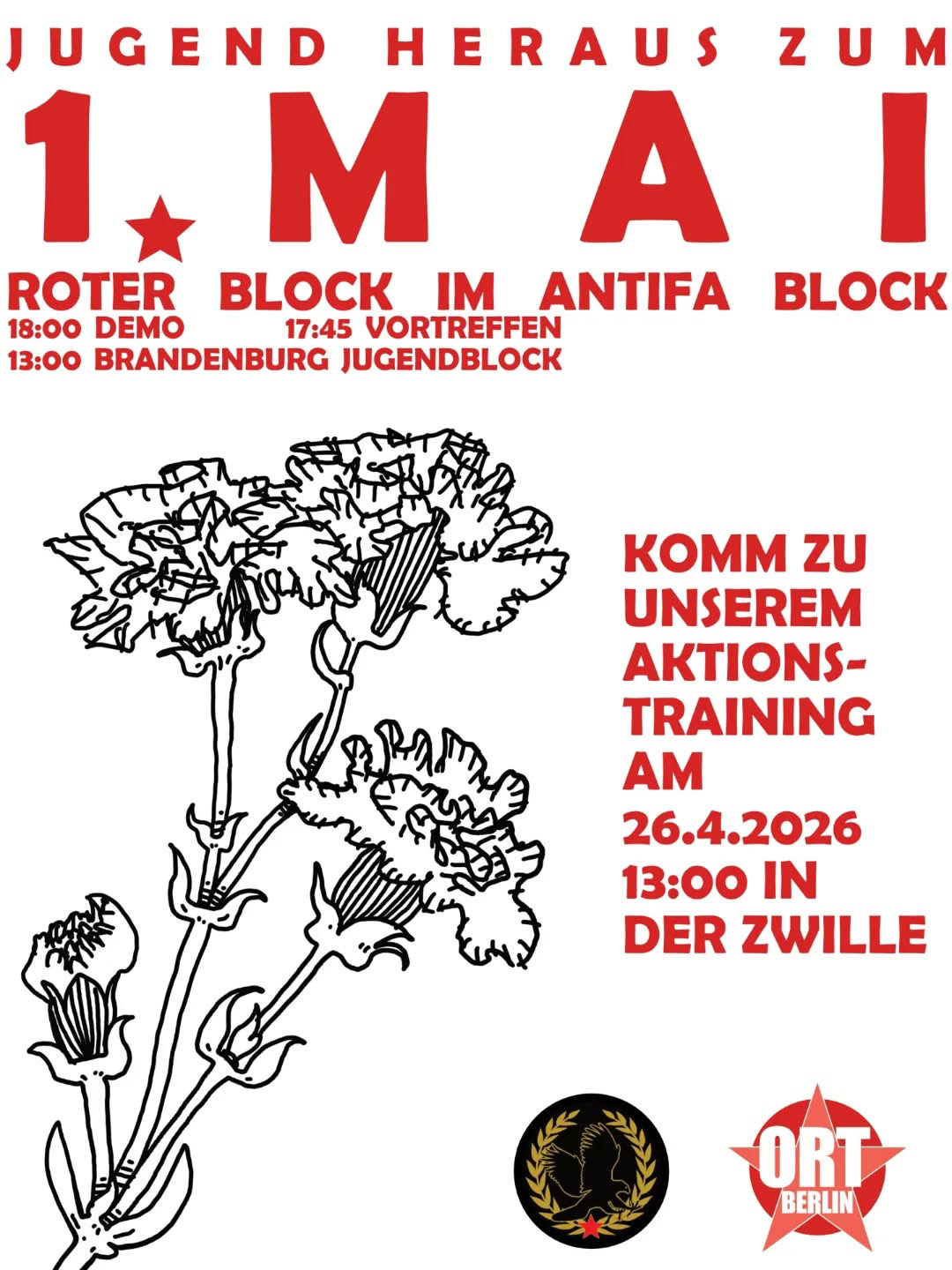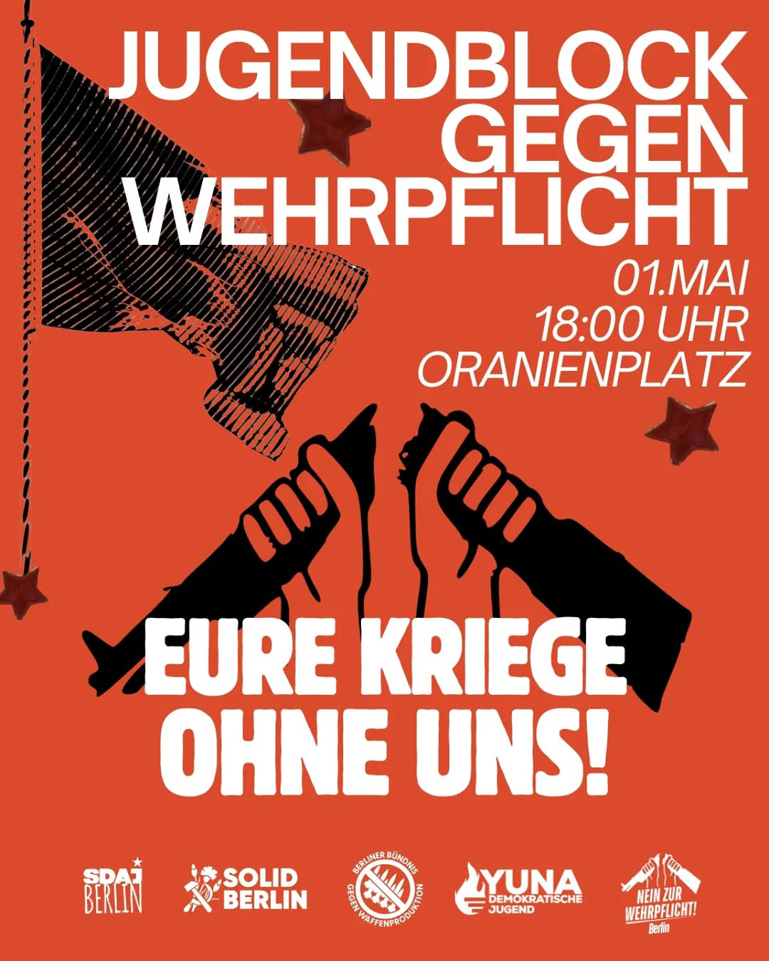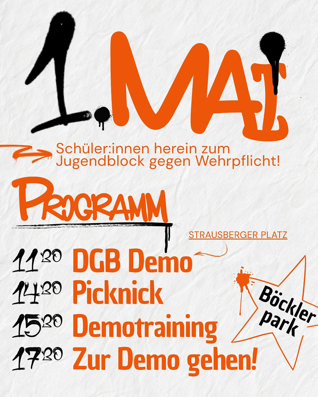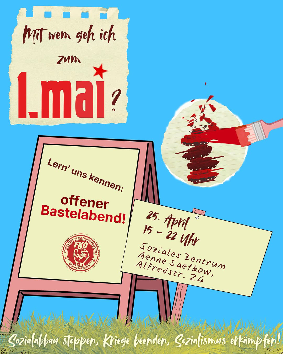 Kommt am 1. Mai 2026 mit uns auf die Straße und beteiligt euch am klassenkämpferischen Block auf der DGB-Demo um 11 Uhr am Strausberger Platz