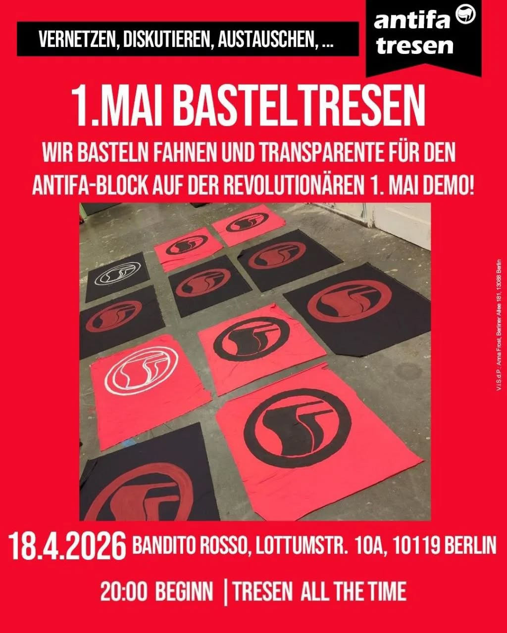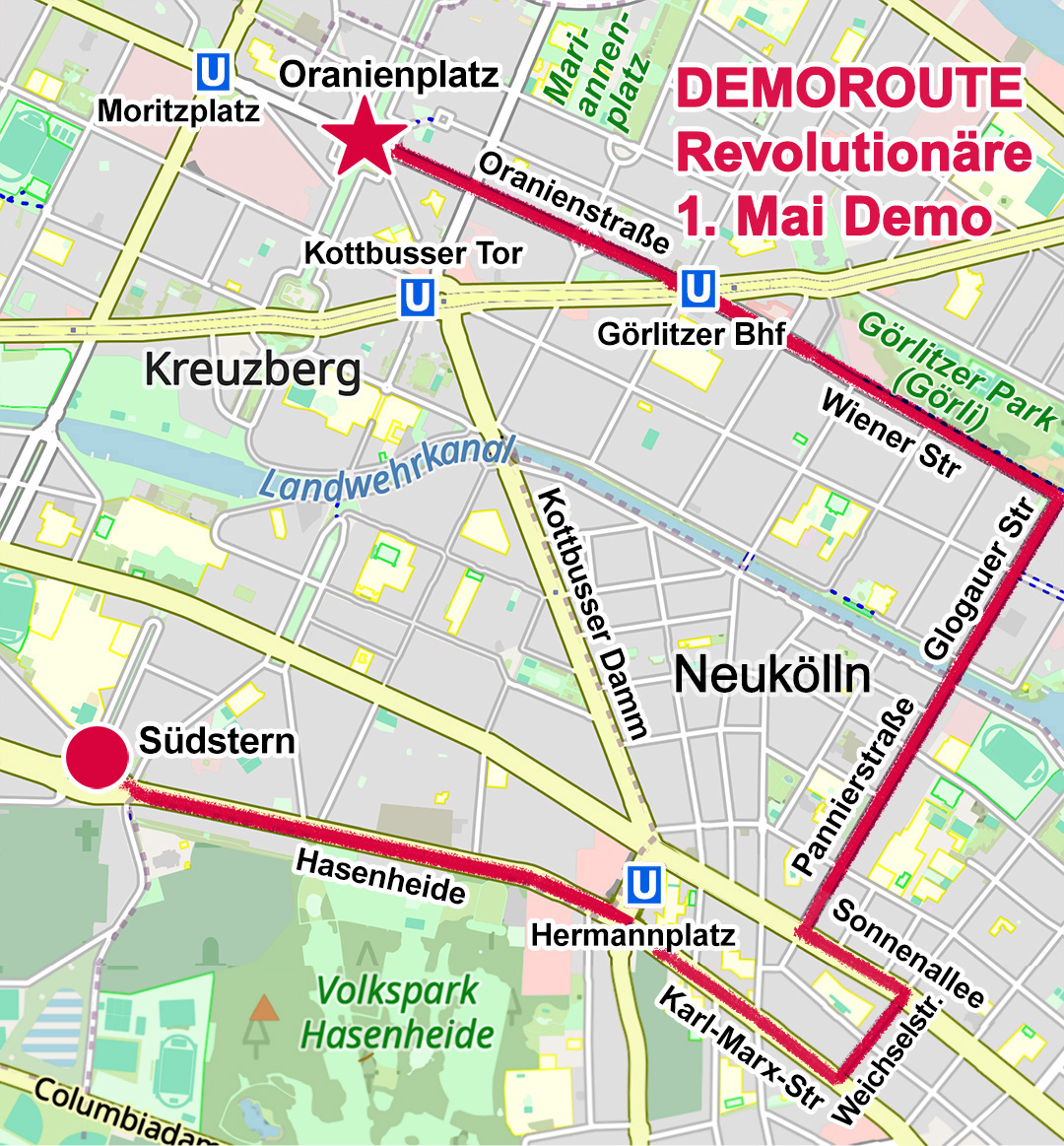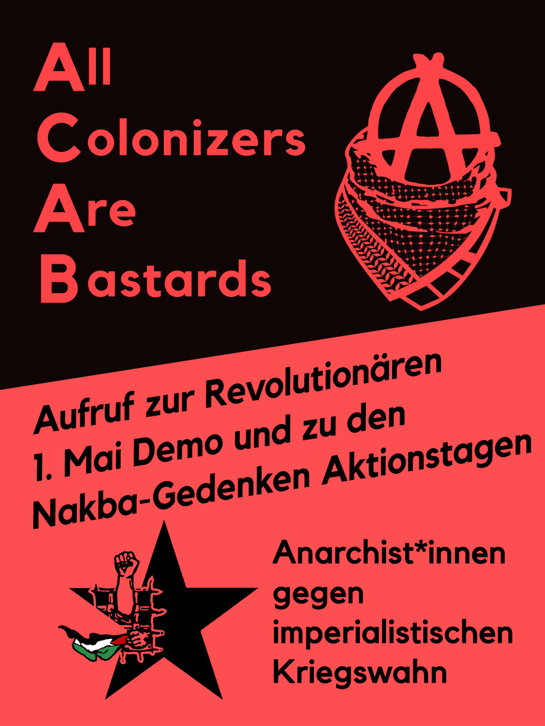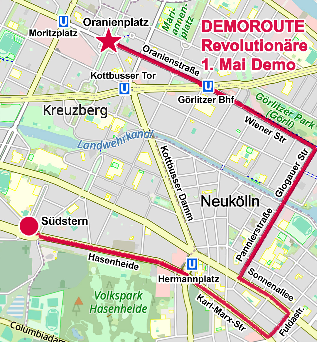 Wir rufen außerdem auf am Abend zur Revolutionären 1.-Mai-Demo zu kommen um 18 Uhr am Oranienplatz