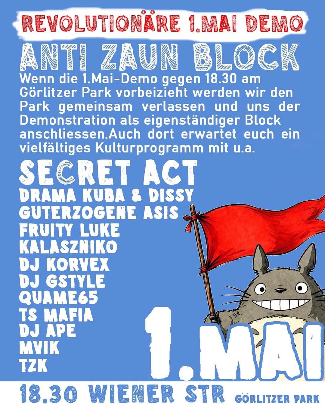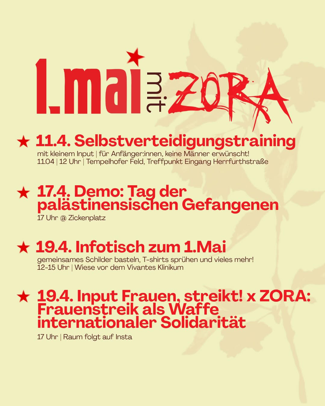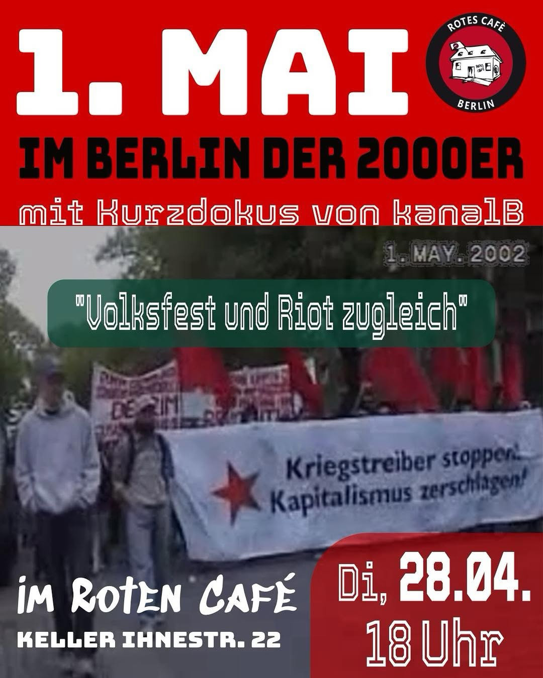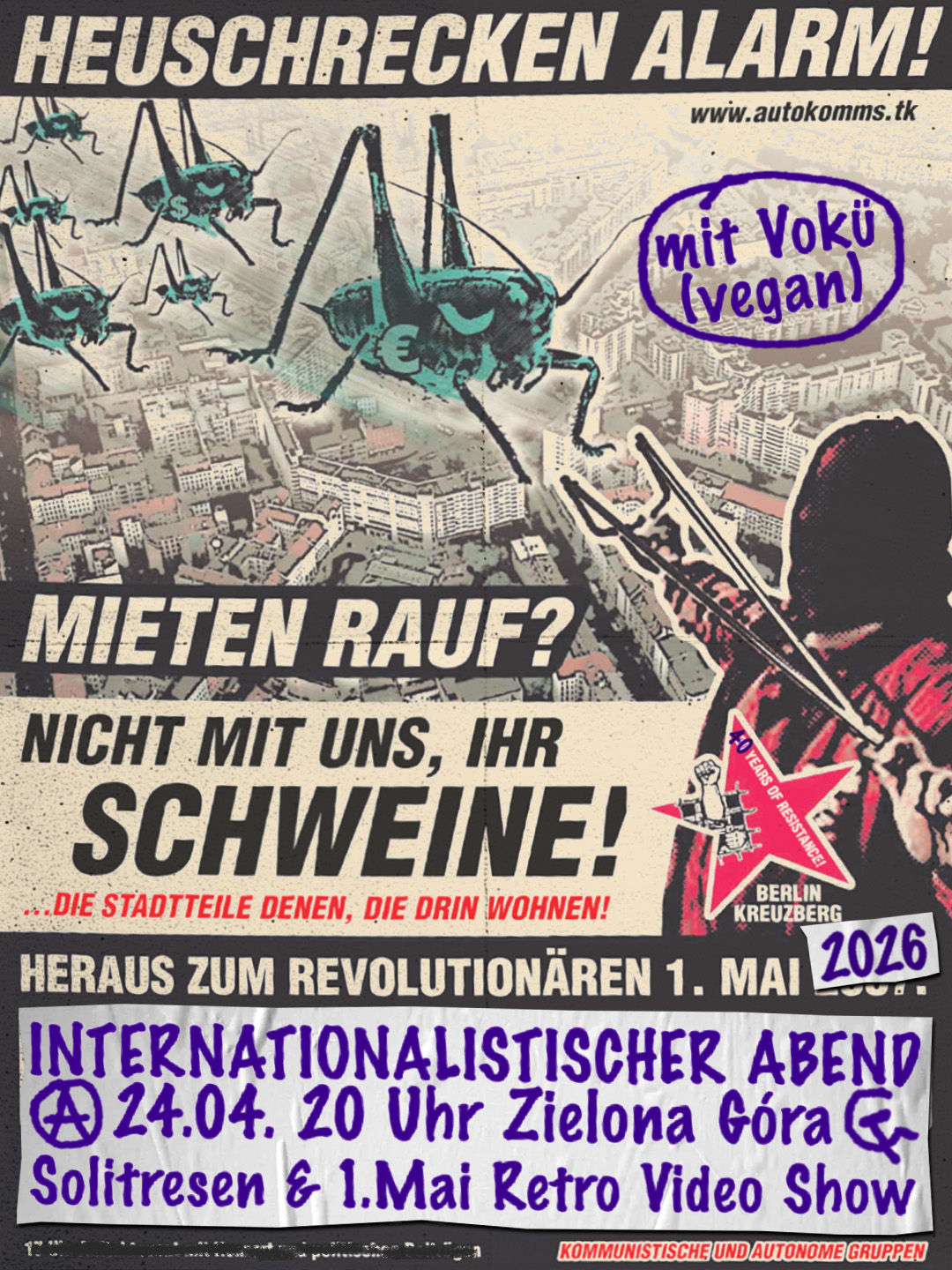 Wir rufen außerdem auf am Abend zur Revolutionären 1.-Mai-Demo zu kommen um 18 Uhr am Oranienplatz